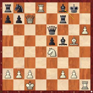 19.Rxf8+! Kxf8 19...Rxf8 20.Qg7# 20.Qd8+ Qe8 21.h7 Rxh7 21...Qxd8 22.h8Q#; 21...Bxh7 22.Bh6+ Kg8 23.Qxe8+ Rf8 24.Qxf8# 2.Be7+ Rxe7 22...Kf7 23.Ng5+ Kg7 24.Rxh7+ Bxh7 25.Qxe8 23.Rh8+ Kf7 24.Rxe8 Rxe8 25.Nd6+ Black Resigns