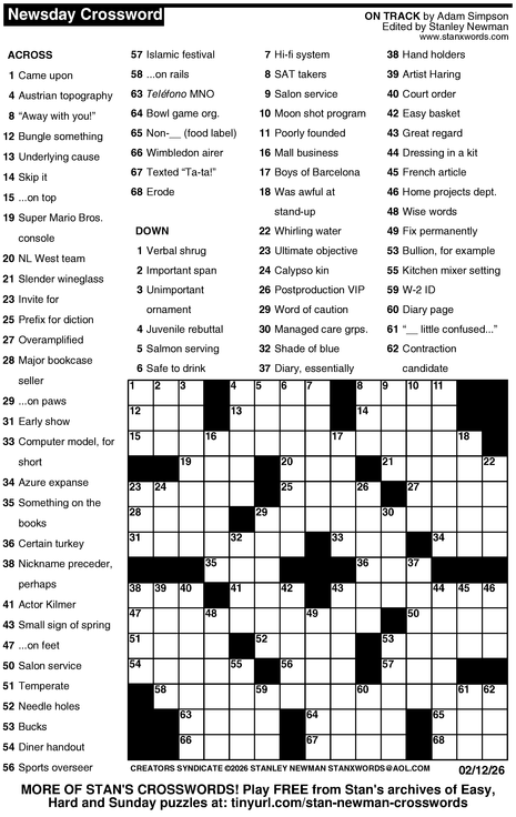 Crossword for 2/12/2026